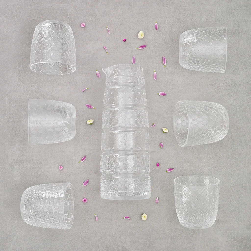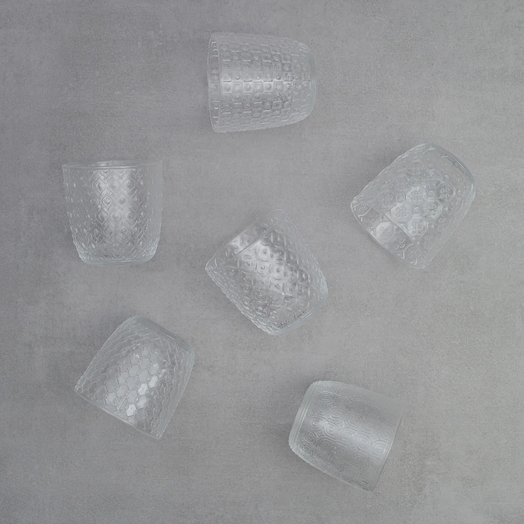 Textures is een collectie designbrillen met zes soorten reliëftexturen. Geïnspireerd door de revolutie van geometrische vormen uit de jaren zestig is het een unieke en bijzondere collectie die een statement zal maken op je tafel. Het is een collectie van handgeblazen glas door Italiaanse glasmeesters, waarbij elk detail minutieus is verzorgd.