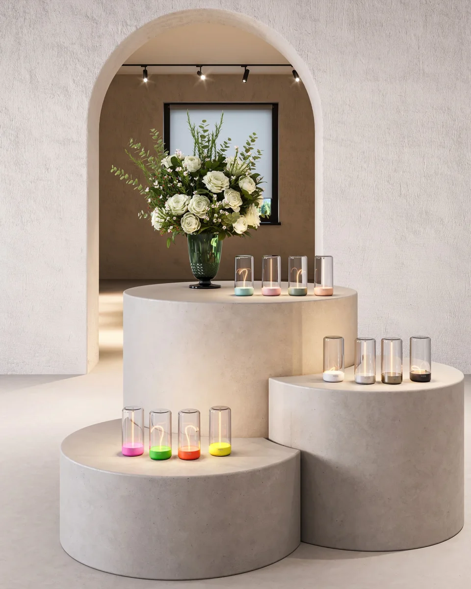De lamp is oplaadbaar via USB-C en heeft een ingebouwde lithium-ion batterij. Met de aanraaksensor kies je eenvoudig tussen drie lichtstanden: subtiel sfeerlicht, volle helderheid of een uniek pulserend lichteffect.