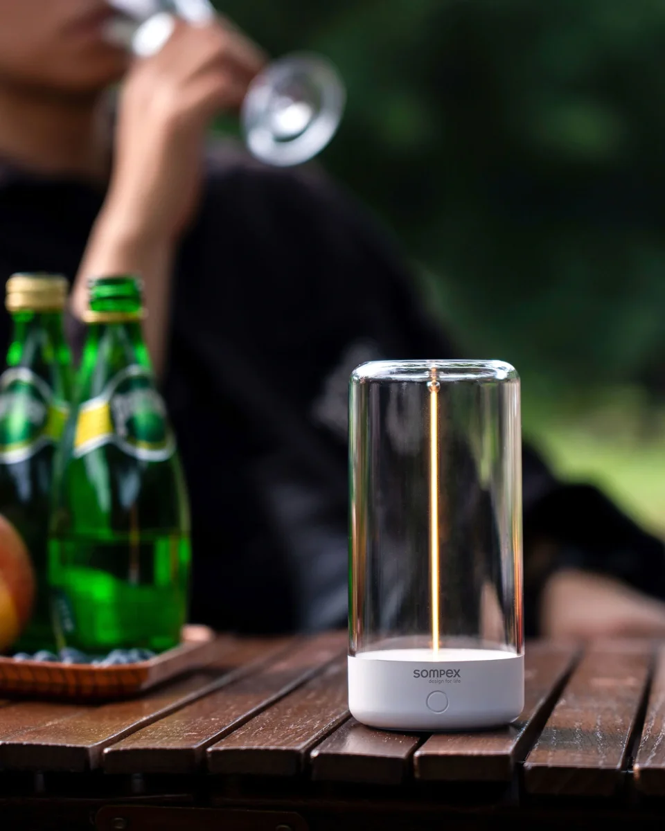 De lamp is oplaadbaar via USB-C en heeft een ingebouwde lithium-ion batterij. Met de aanraaksensor kies je eenvoudig tussen drie lichtstanden: subtiel sfeerlicht, volle helderheid of een uniek pulserend lichteffect.