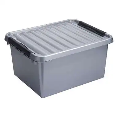 Stapelbare Q-line opbergbox 36 liter – grijs/zwart – 26x40x50 cm – Leen Bakker