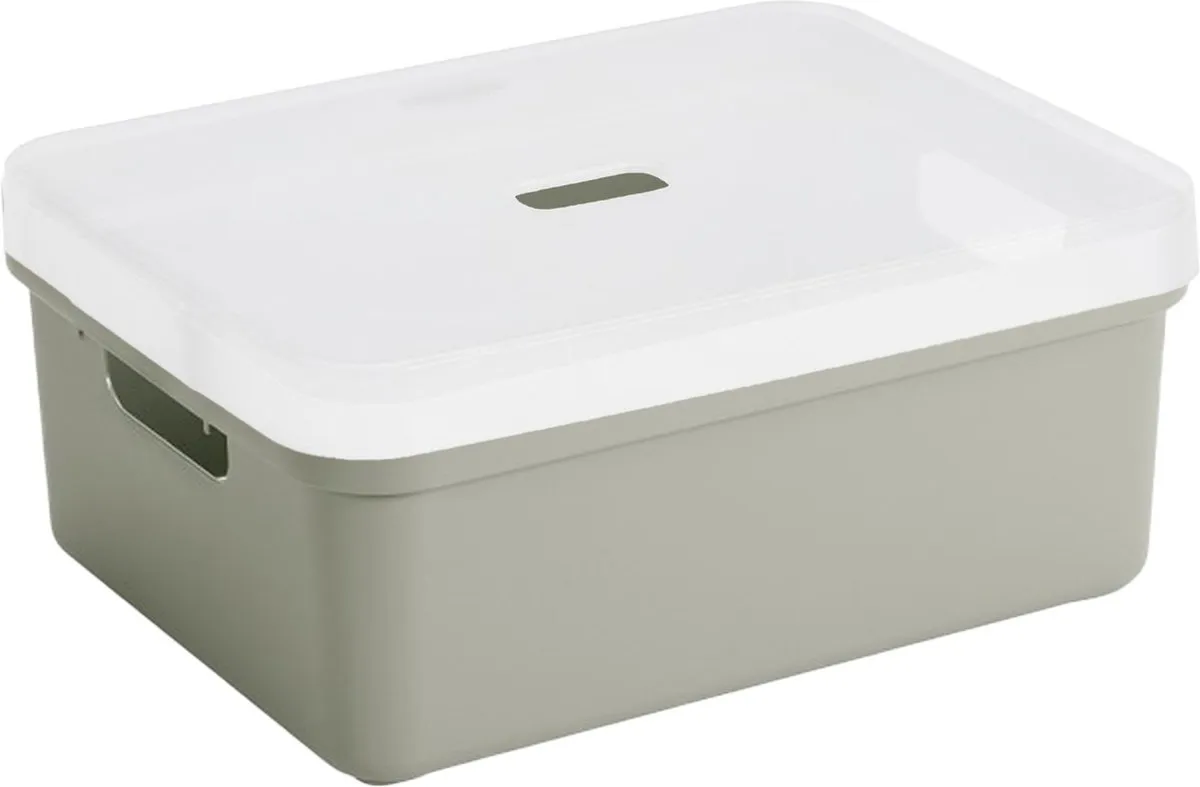 Sunware opbergbox/opbergmand 24 liter lichtgroen kunststof met transparante afsluit deksel. Door het moderne design en de luxe uitstraling van deze boxen kun je deze opbergboxen/opbergdozen prima in de woonkamer of slaapkamer plaatsen. Deze box is bijvoorbeeld geschikt voor het opbergen van rondslingerend speelgoed, het opbergen van boeken, en al je schuur of kledingkast spullen. Ook ideaal voor in de badkamer of in de voorraadkast. De mand heeft handgrepen waardoor je ze gemakkelijk kunt dragen. Formaat boxen: ongeveer 45,3 x 35,4 x 18,3 cm. Stapelbaar.