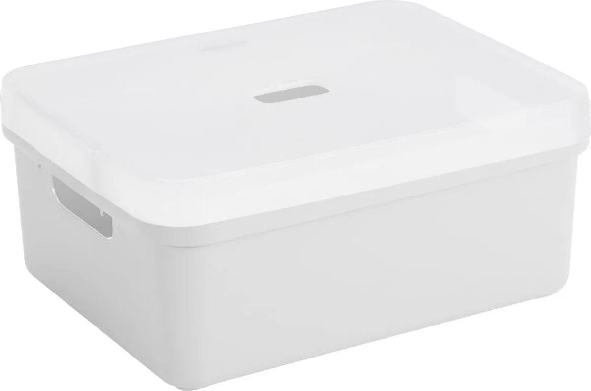 Sunware opbergbox/opbergmand 24 liter wit kunststof met transparante afsluit deksel. Door het moderne design en de luxe uitstraling van deze boxen kun je deze opbergboxen/opbergdozen prima in de woonkamer of slaapkamer plaatsen. Deze box is bijvoorbeeld geschikt voor het opbergen van rondslingerend speelgoed, het opbergen van boeken, en al je schuur of kledingkast spullen. Ook ideaal voor in de badkamer of in de voorraadkast. De mand heeft handgrepen waardoor je ze gemakkelijk kunt dragen. Formaat boxen: ongeveer 45,3 x 35,4 x 18,3 cm. Stapelbaar.