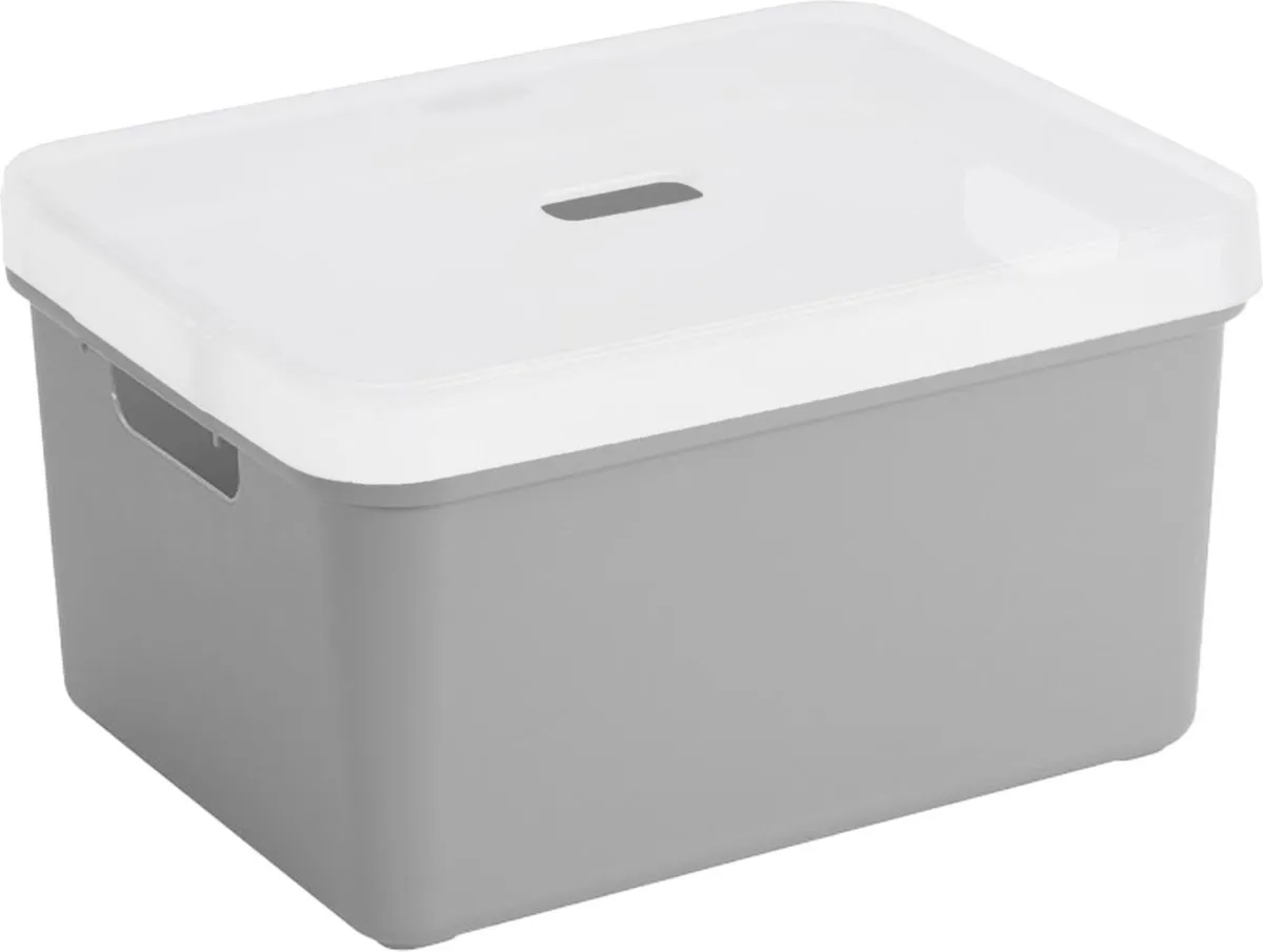 Sunware opbergbox/opbergmand 32 liter lichtgrijs kunststof met transparante afsluit deksel. Door het moderne design en de luxe uitstraling van deze boxen kun je deze opbergboxen/opbergdozen prima in de woonkamer of slaapkamer plaatsen. Deze box is bijvoorbeeld geschikt voor het opbergen van rondslingerend speelgoed, het opbergen van boeken, en al je schuur of kledingkast spullen. Ook ideaal voor in de badkamer of in de voorraadkast. De mand heeft handgrepen waardoor je ze gemakkelijk kunt dragen. Formaat boxen: ongeveer 45,3 x 35,4 x 24,3 cm. Stapelbaar.