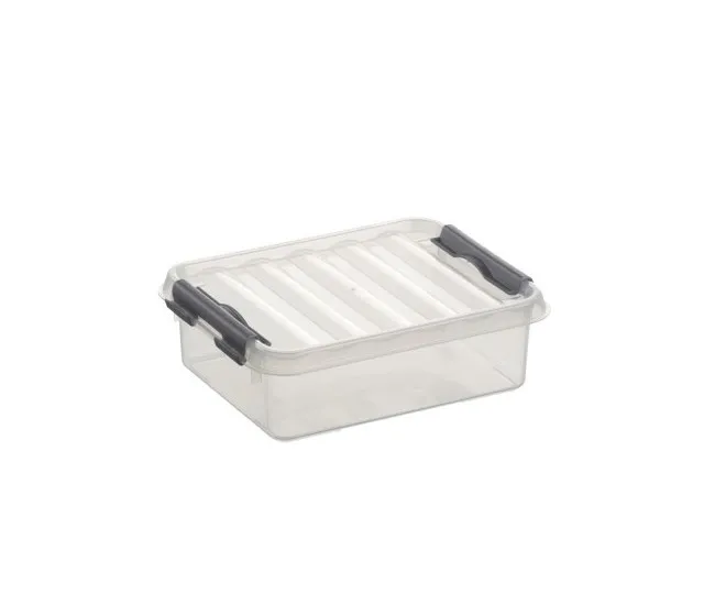 Kunststof, in meerdere kleuren, rechthoekig. Afsluitbaar; de deksel is door middel van 2 clips op de box te bevestigen.