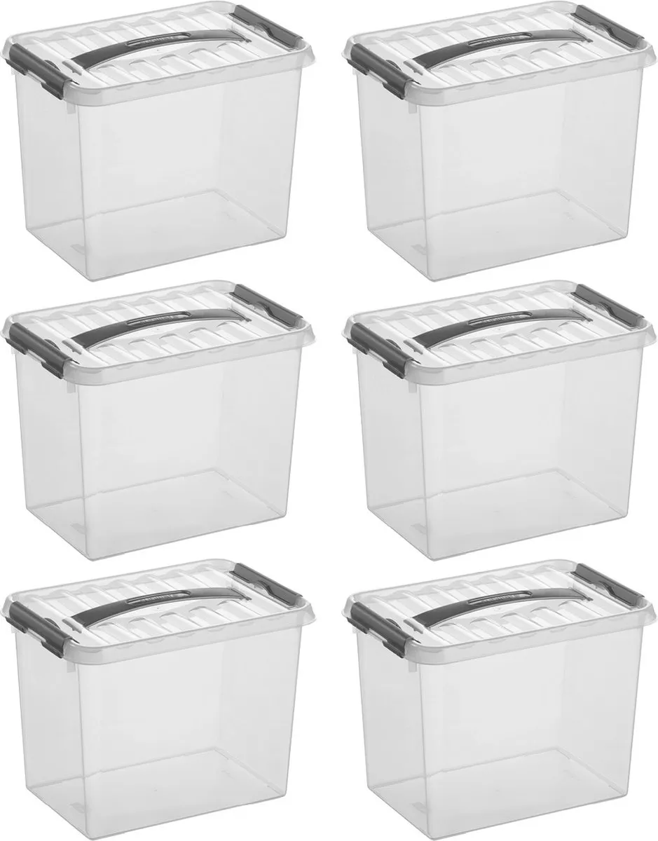 Sunware – Q-line opbergbox 9L – Set van 6 – Transparant/grijs