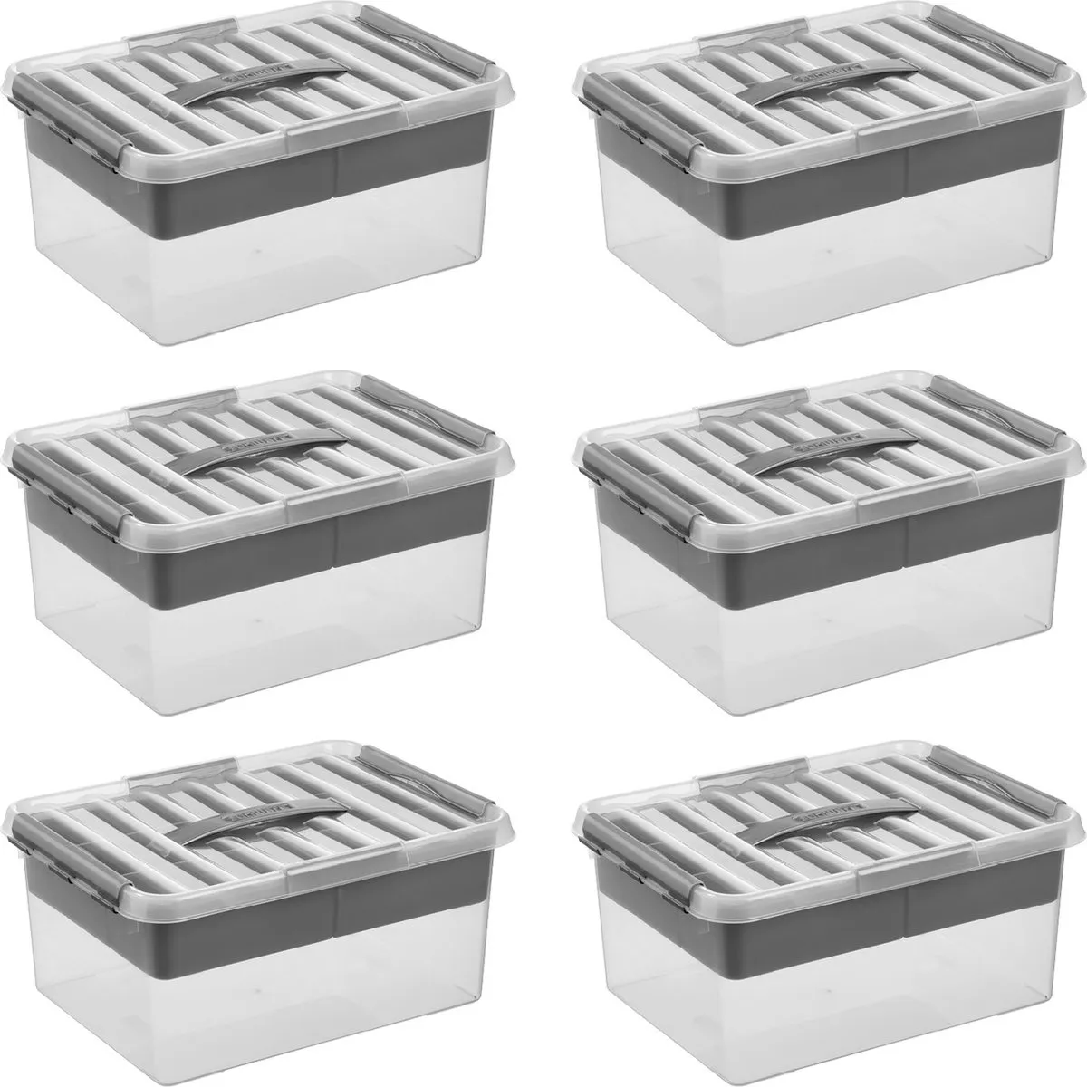 Sunware – Q-line opbergbox met inzet 15L – Set van 6 – Transparant/grijs