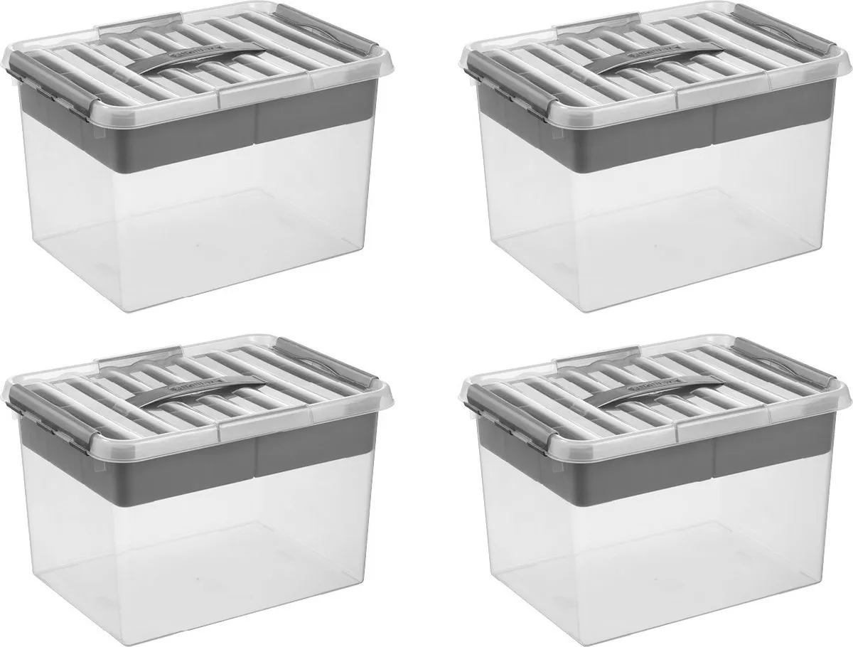Sunware – Q-line opbergbox met inzet 22L – Set van 4 – Transparant/grijs