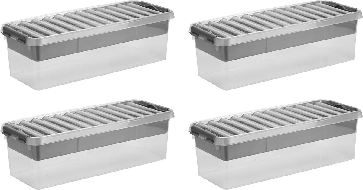 Sunware – Q-line opbergbox met inzet 9,5L – Set van 4 – Transparant/grijs