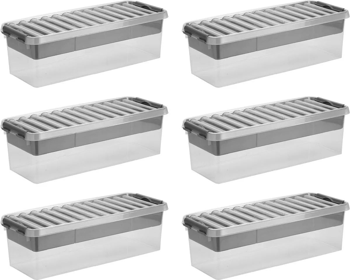 Sunware – Q-line opbergbox met inzet 9,5L – Set van 6 – Transparant/grijs