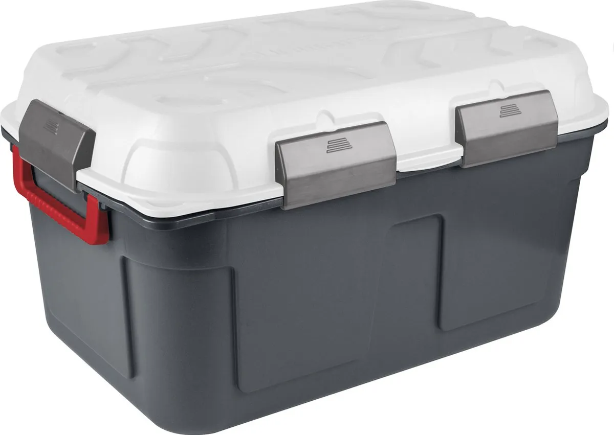 Bescherm je spullen tegen vocht en vuil met de Q-line water-resistant box! Deze multifunctionele en stevige box is voorzien van een hermetisch afgesloten deksel en 6 stevige sluitclips die ervoor zorgen dat jij jouw spullen waterbestendig kunt opbergen. Daarnaast is de box van alle gemakken voorzien: het bevat een sleepbeugel, twee wielen, een slotmogelijkheid en is perfect stapelbaar. Deze box is dan ook uitermate geschikt voor zowel buiten- als binnengebruik in vochtige of stoffige ruimtes.