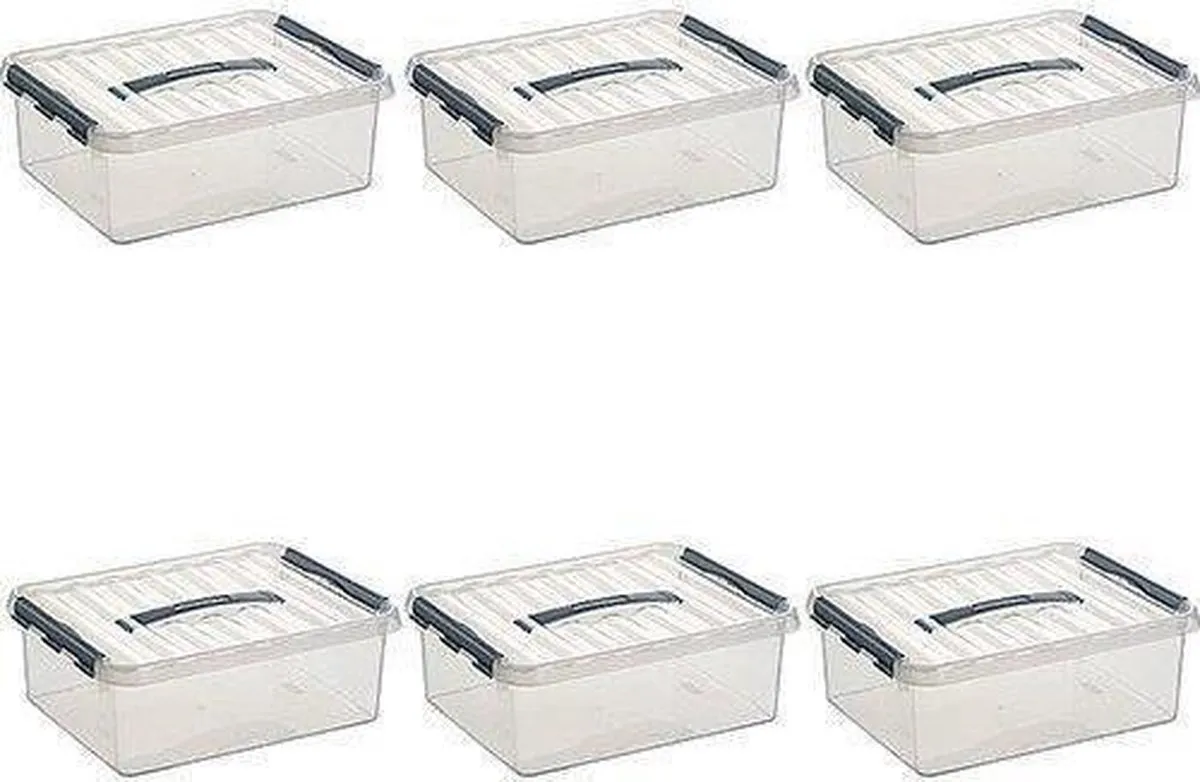 Sunware Q-line kunststof opbergbox met een inhoud van 12 liter. Deze stevige opbergbox is transparant en heeft kleurige klemmen om de meegeleverde deksel op de box te bevestigen. Tevens heeft de deksel aan handig kleurig handvat, zodat deze opbergbox makkelijk mee te nemen is.