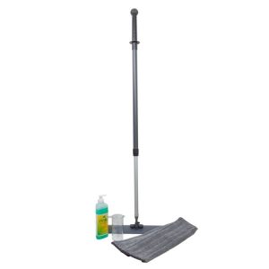 Een glasmop systeem gebruik je alleen voor ramen en glas aan de binnenzijde. Door dit systeem te gebruiken kun je met heel weinig water de ramen binnen schoonmaken. Geen kans op druppels op je houten vloer dus.