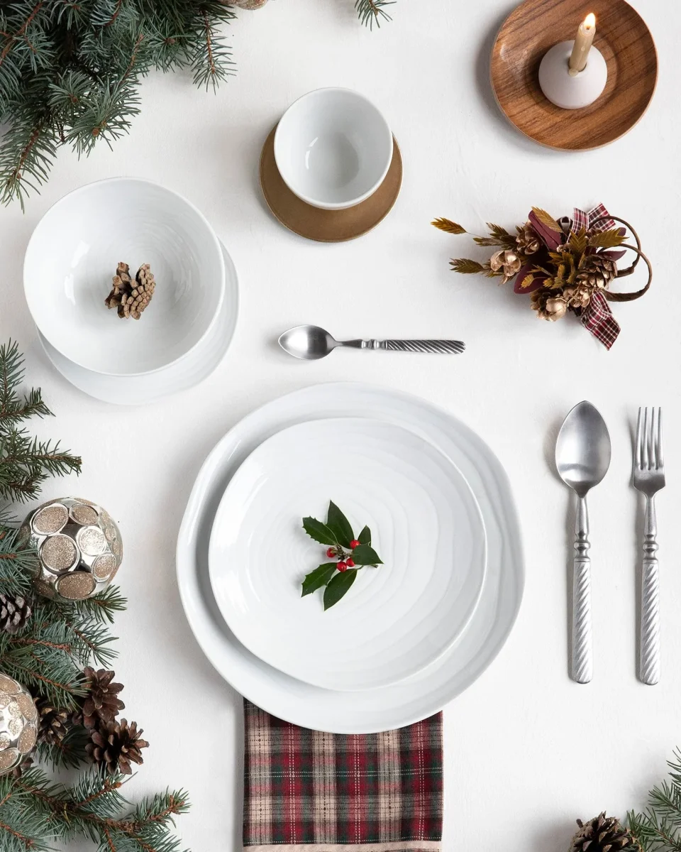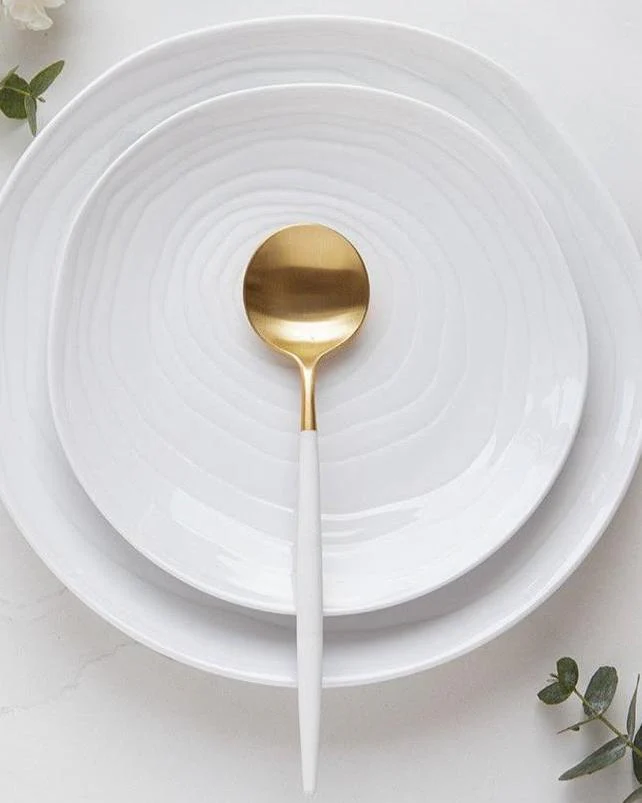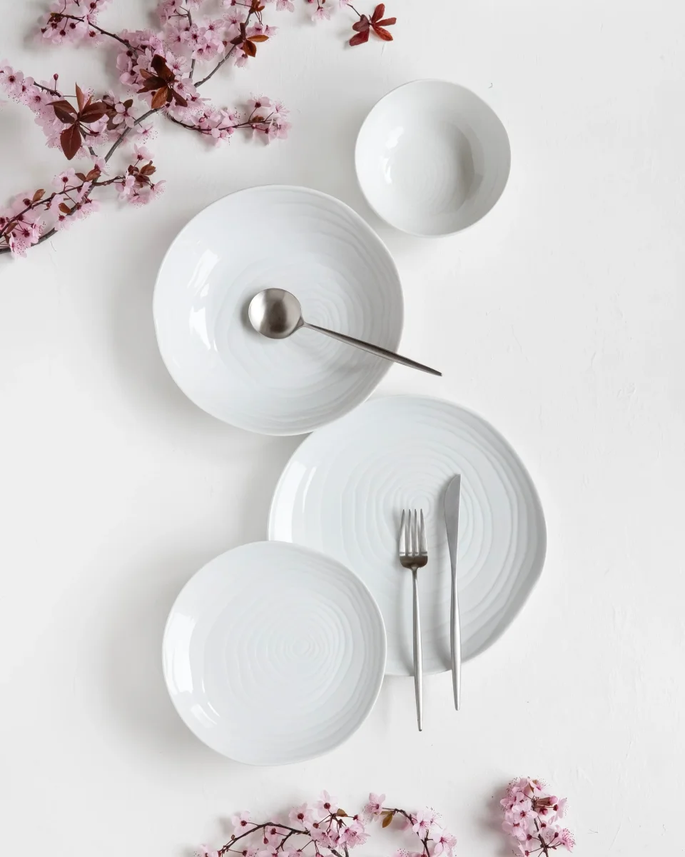 Ontwerp geïnspireerd op de dwarsdoorsnede van de teakboomstam combineert de organische vormen van de verschillende stukken met ongeëvenaarde elegantie. Handgemaakt in een van de oudste porseleinserviesfabrieken van Frankrijk, het is een prachtige collectie om elk moment aan tafel aan te kleden.