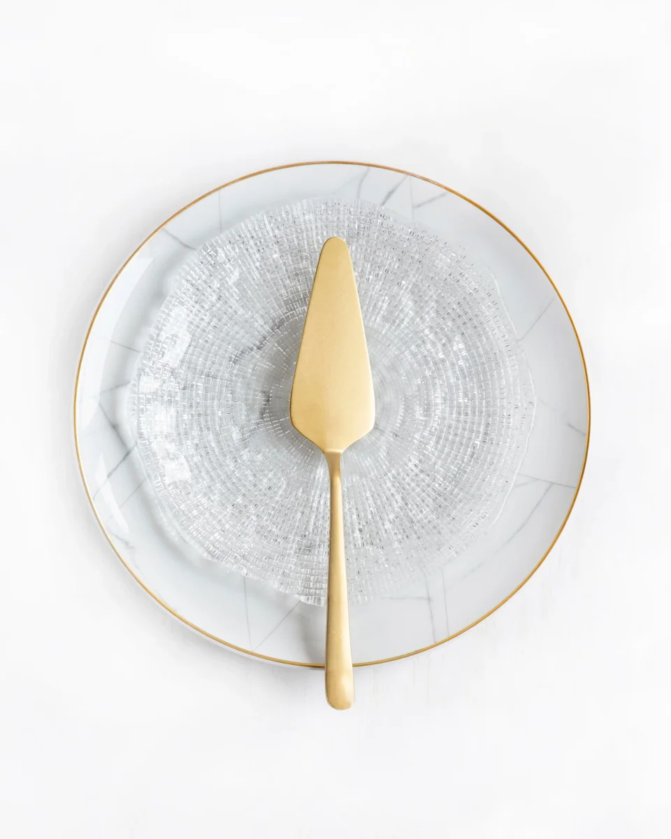 Taartschep uit de Tribeca-collectie van hoogwaardig roestvrij staal met vintage gouden afwerking, handgemaakt in Portugal door ambachtslieden met meer dan honderd jaar geschiedenis.