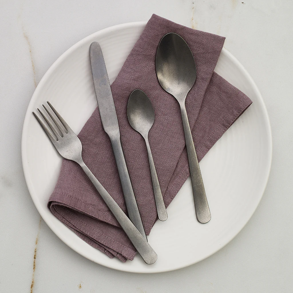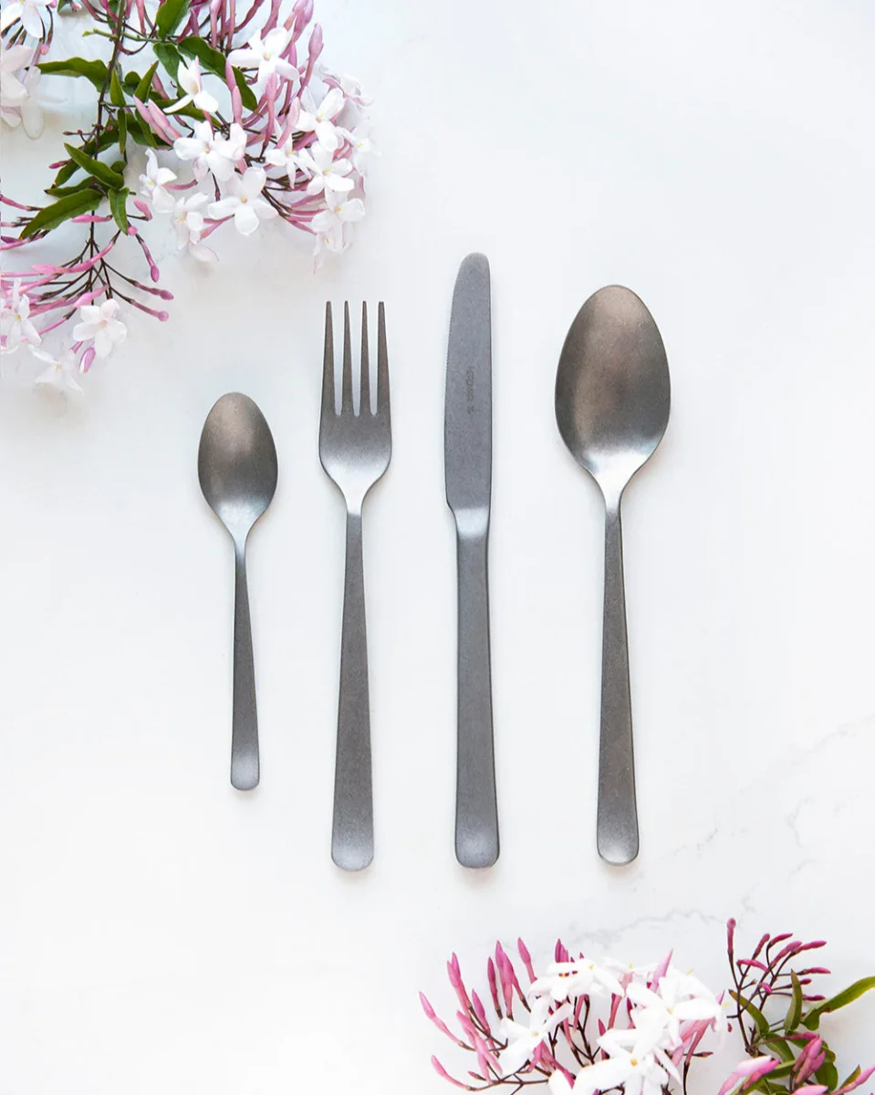 Set van 4 stuks roestvrijstalen bestek in een hoogwaardige vintage matte afwerking.