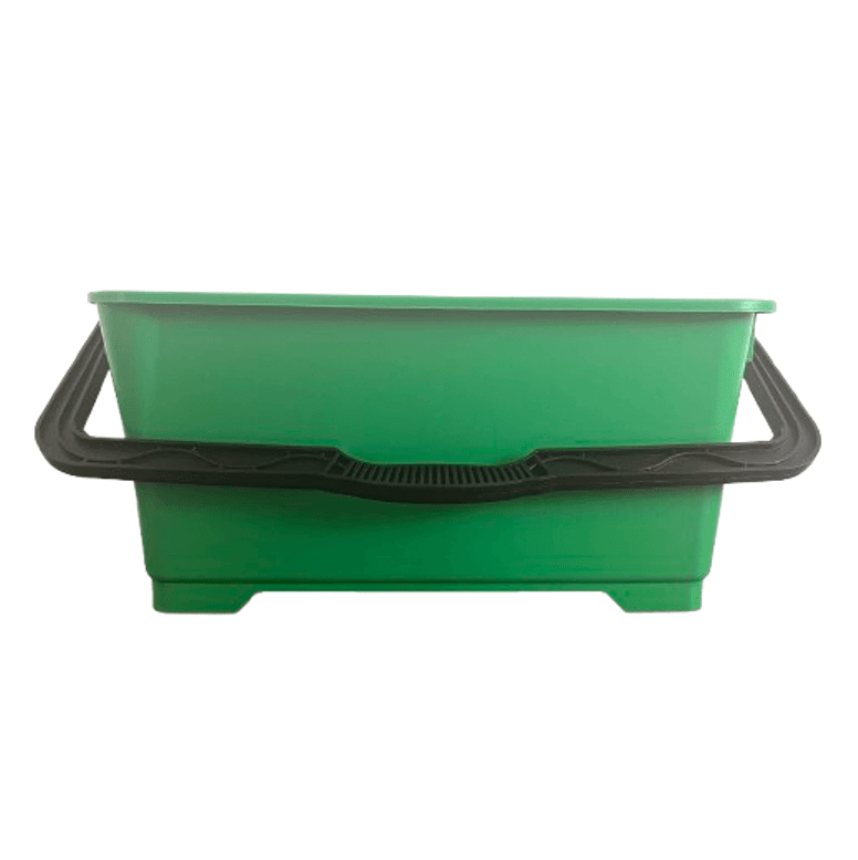 Deze grote emmer is voorzien van 2 gietuitsparingen. Ook heeft deze groene rechthoekige emmer een dubbele maatvoering in gallons en liters.