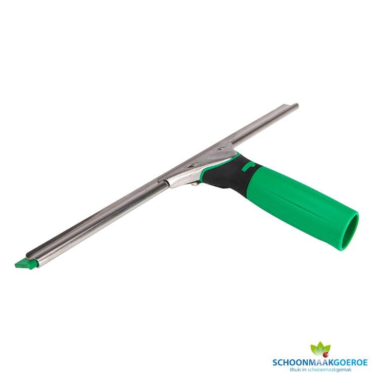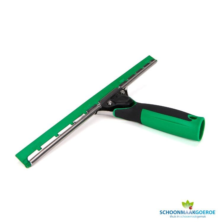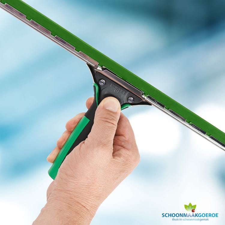 Deze professionele Unger ErgoTec 35cm raamwisser met ergonomische greep en groen soft rubber ES35G is een krachtpatser op het gebied van professioneel glazenwassers gereedschap.