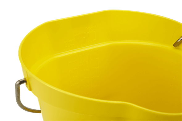 Minder knoeien en verspillen doe je door de speciale schenkmond. En je weet precies hoeveel er nog in je emmer zit door de maatverdeling. De emmer is stapelbaar dus na gebruik nemen ze weinig ruimte in. Is het belangrijk dat de vloer vrij blijft van spullen? Door de vlakke achterkant is het heel eenvoudig om de emmer na gebruik aan de muur op te hangen met de optioneel verkrijgbare muurbeugel.