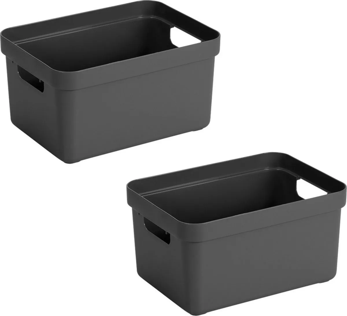 Voordeelset van 8x stuks antraciet grijze opbergboxen/opbergdozen/manden 13 liter kunststof. Door het moderne design en de luxe uitstraling van de boxen kun je deze opbergboxen/opbergdozen prima in de woonkamer of slaapkamer plaatsen. Deze box is bijvoorbeeld geschikt voor het opbergen van rondslingerend speelgoed, breiwerkjes of het opbergen van boeken. Ook ideaal voor in de badkamer of in de voorraadkast. De mand heeft handgrepen waardoor je ze gemakkelijk kunt dragen. Formaat: ongeveer 35,2 x 25,3 x 18,3 cm. Materiaal: kunststof. Aantal boxen: 1x. Deksel: geen. Inhoud: ca. 13 liter. Kleur: antraciet grijs. Opbergdozen/opbergboxen/manden voor het opbergen van spullen.
