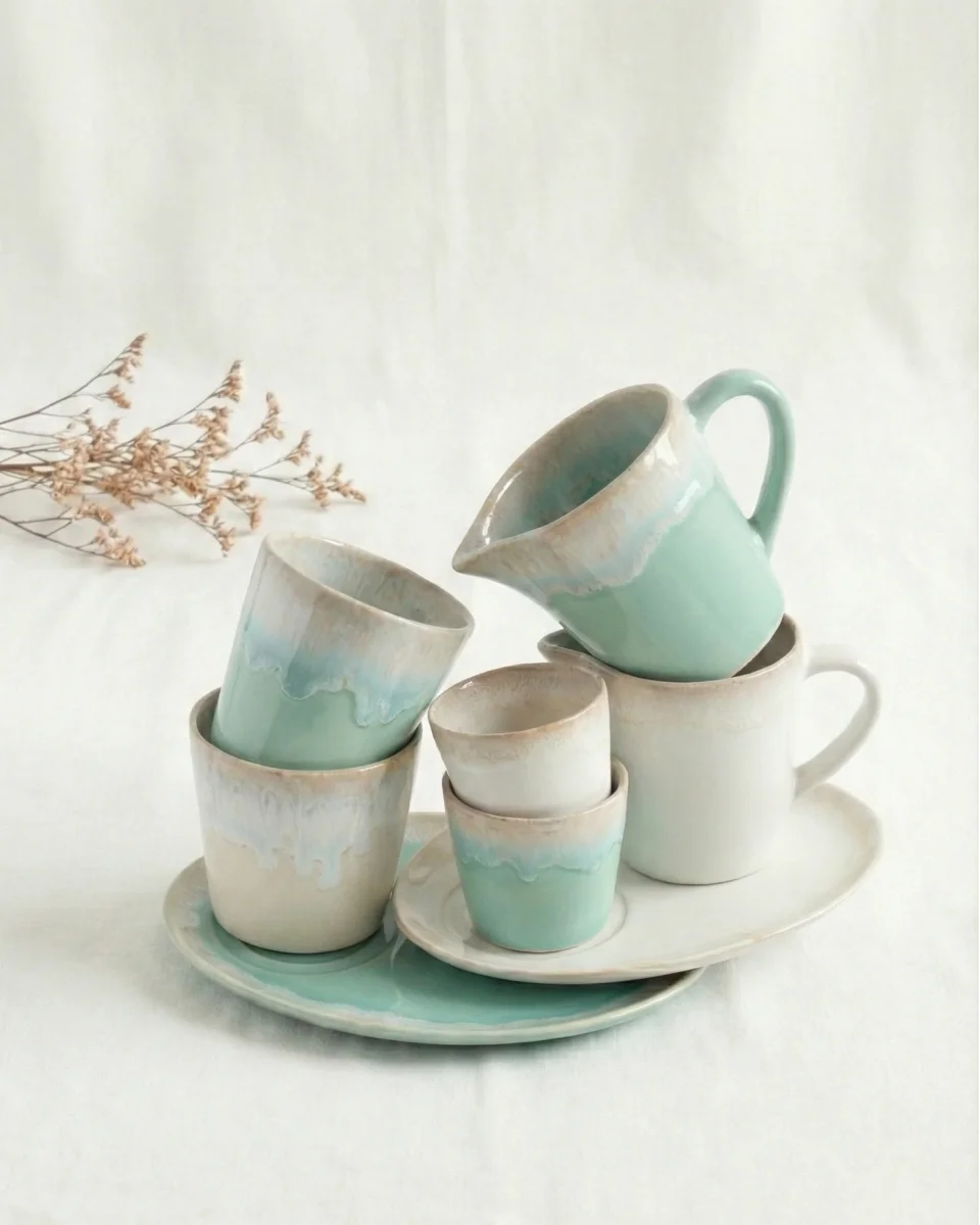 Gemaakt van hoogwaardig Portugees steengoed, combineert het een duurzame en organische textuur met een elegant silhouet, ideaal voor uw koffie, thee of opgeschuimde melk.